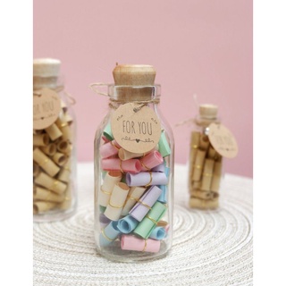 Here is a set of 100 blank scrolls with rings 7cm x 6cm several pretty color options see photo below Blank Message in a Bottle Scrolls Set of 100. Personalized Message in a Bottle. Our Message in a Bottle gift ideas are much more than a Personalized Greeting in a bottle there a Memory contained in a Bottle that will keep everything held together.